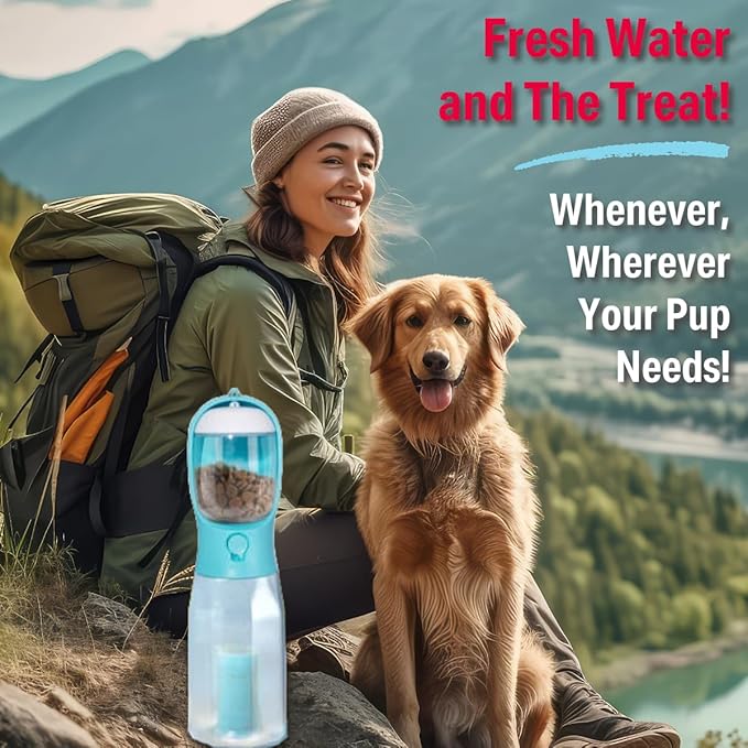 “The food container and water bowl in one bottle is genius. It saves space in my bag when we go to the park.”